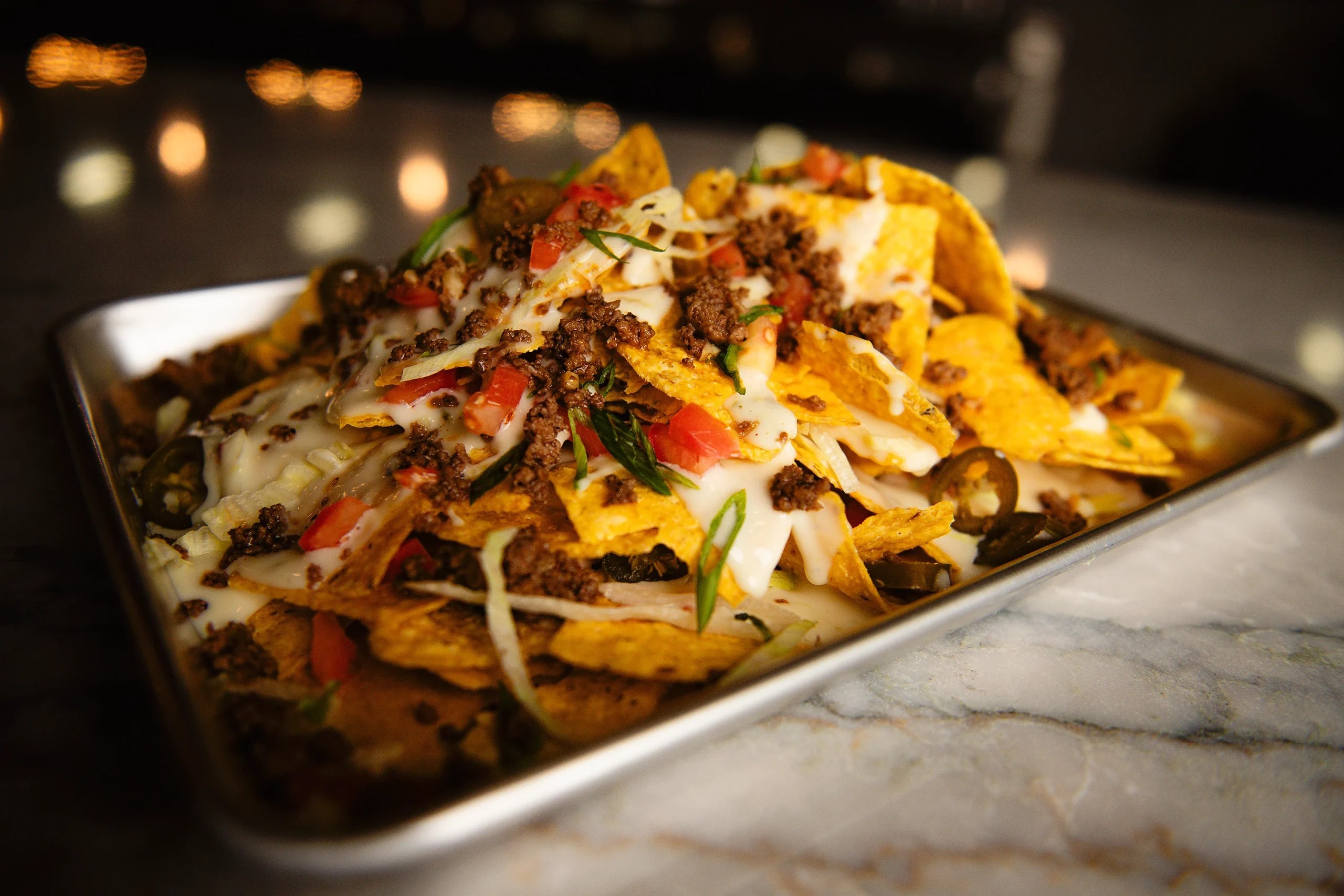 Tortilla chips loaded with queso, tomatoes, lettuce, green onions, jalapeños, and sour cream. Add beef, chicken, or pork. Upgrade to loaded tots +$2