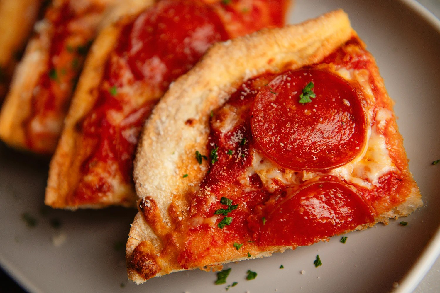 Classic pepperoni with marinara, mozzarella, and parmesan.
