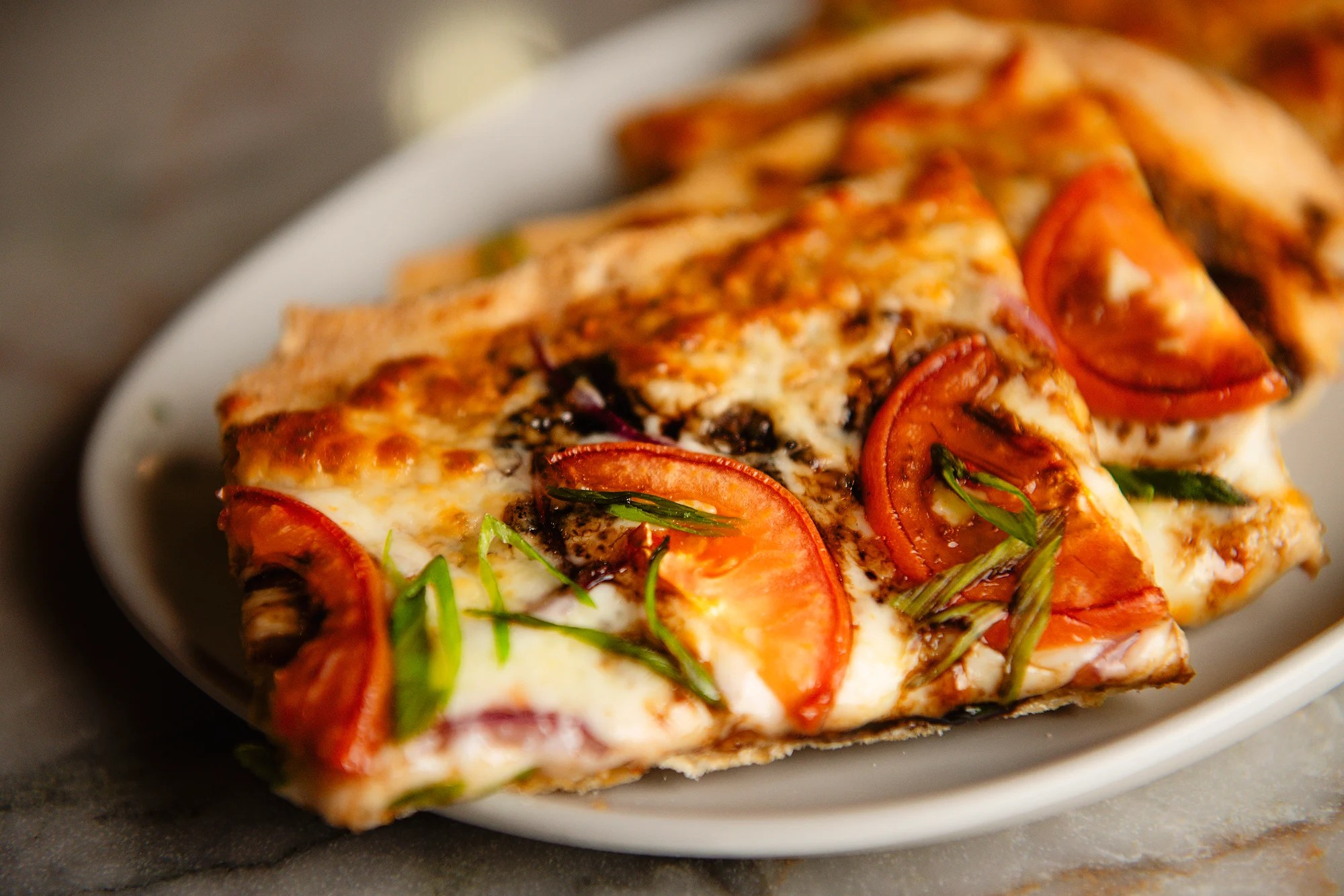 Tomato pesto, mozzarella, red onion, basil, and balsamic drizzle.